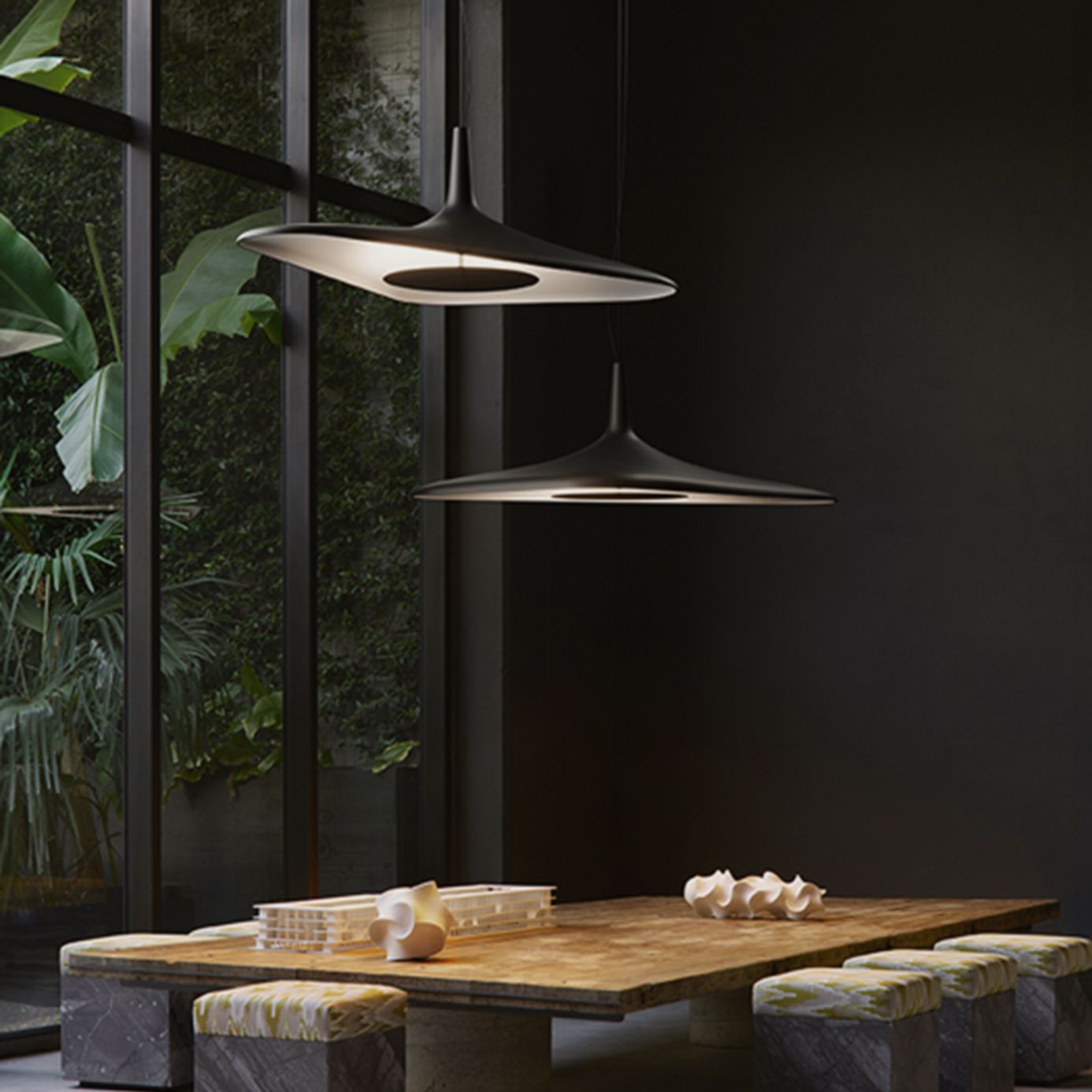 A statement of mood and material, our sculptural lighting designs shape atmosphere through artful illumination.