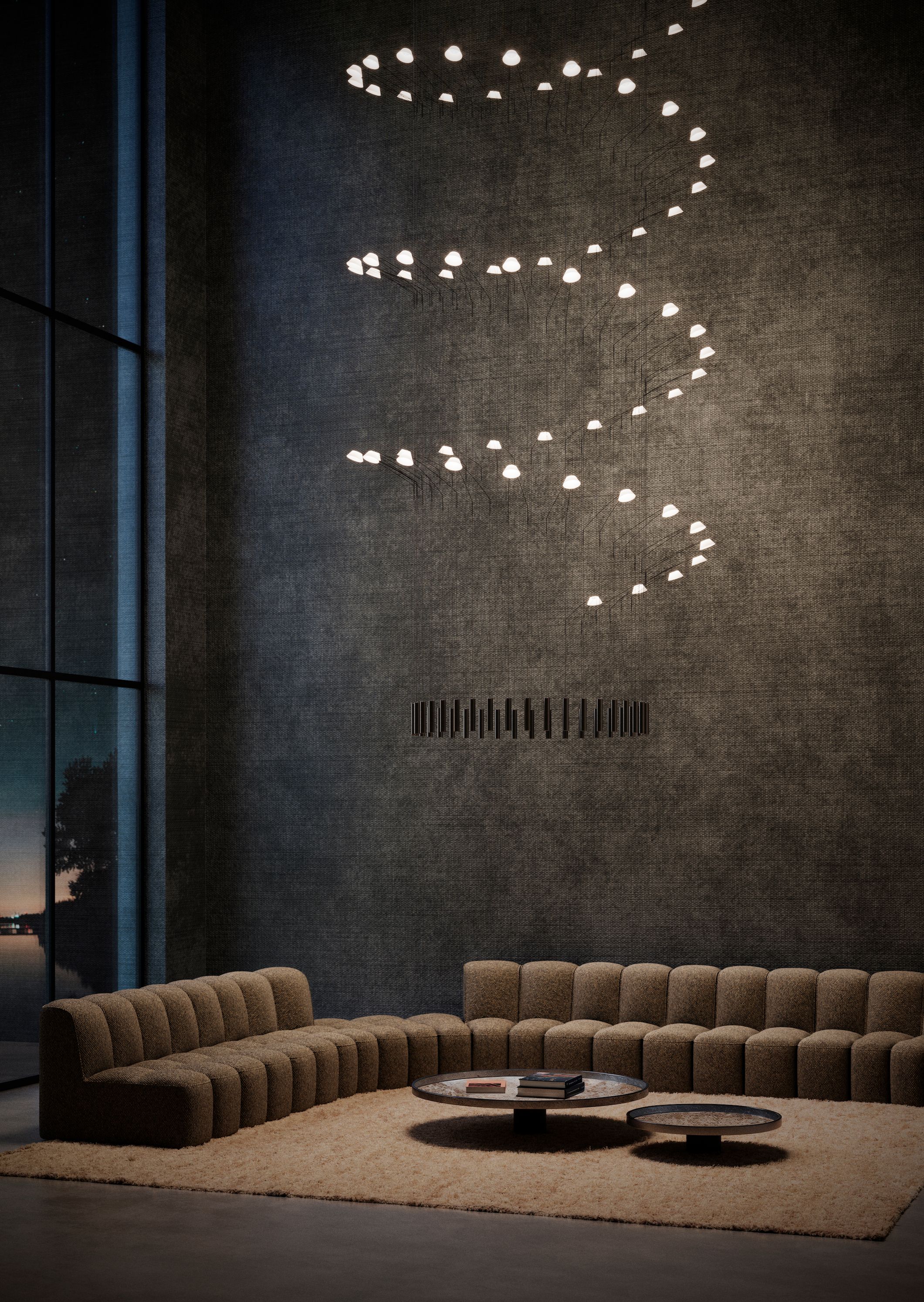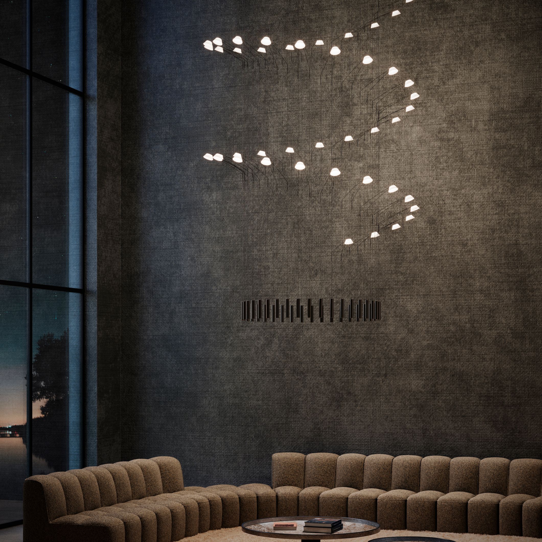 A statement of mood and material, our sculptural lighting designs shape atmosphere through artful illumination.